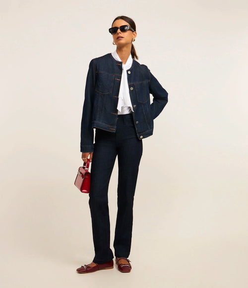 Calça Reta em Jeans com Fivela Lateral Azul